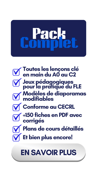 Recevez des fiches d’activités prêtes à l’emploi avec corrigé inclus, à utiliser ou à envoyer directement à vos élèves. Un kit complet pour des cours plus fluides, organisés et engageants.